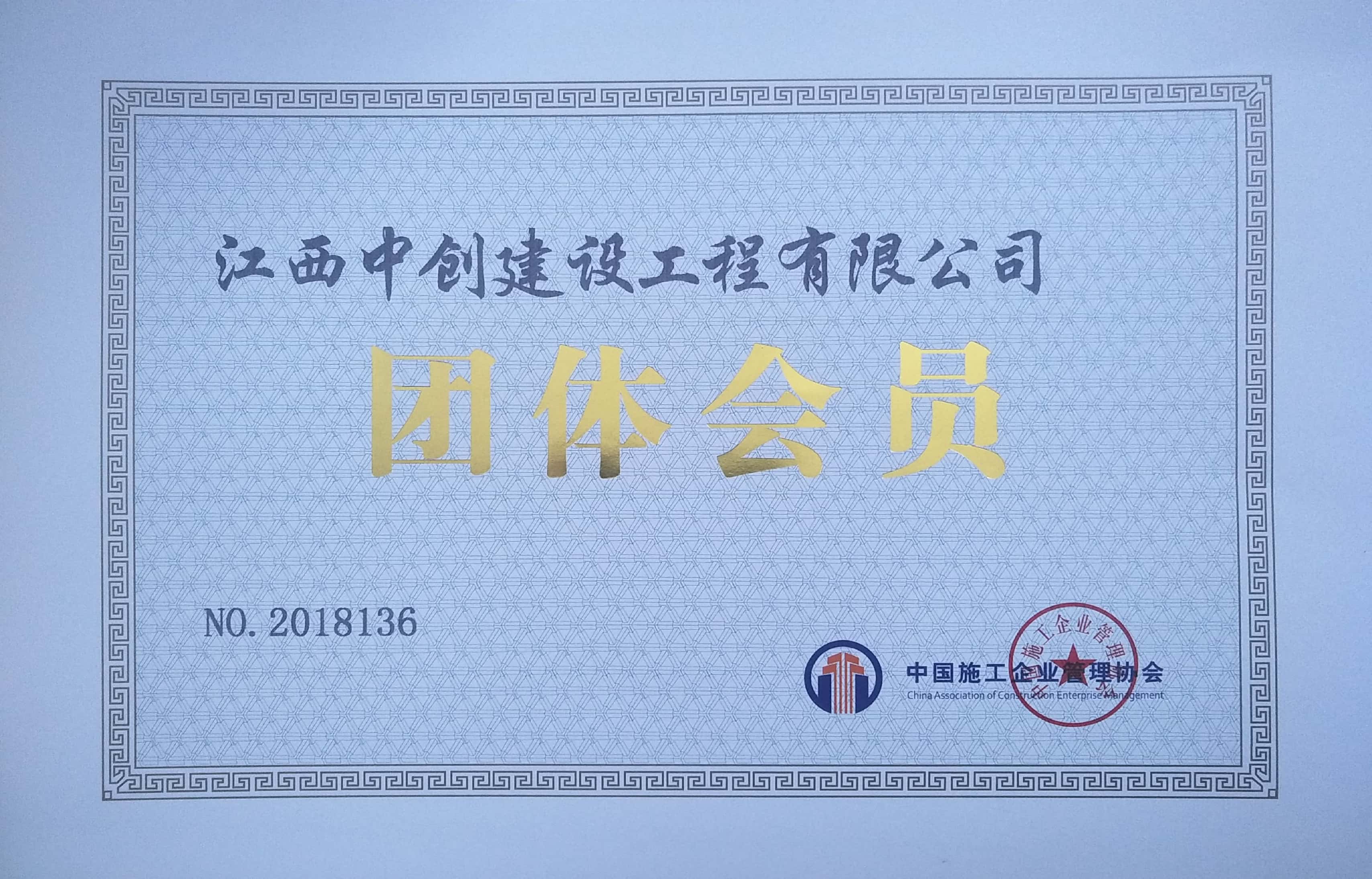 江西中創(chuàng)建設(shè)工程有限公司加入中國施工企業(yè)管理協(xié)會